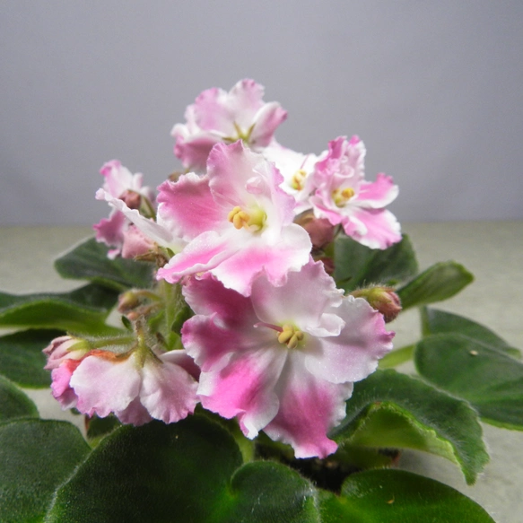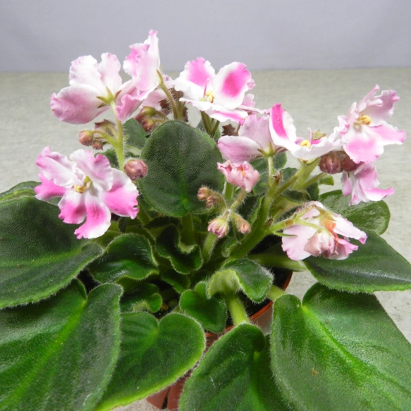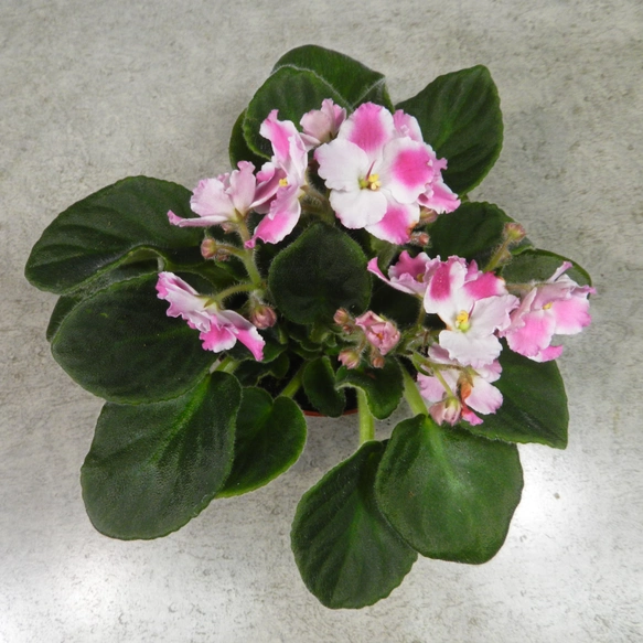 セントポーリアの鉢花商品です。可愛らしい花が咲いています。